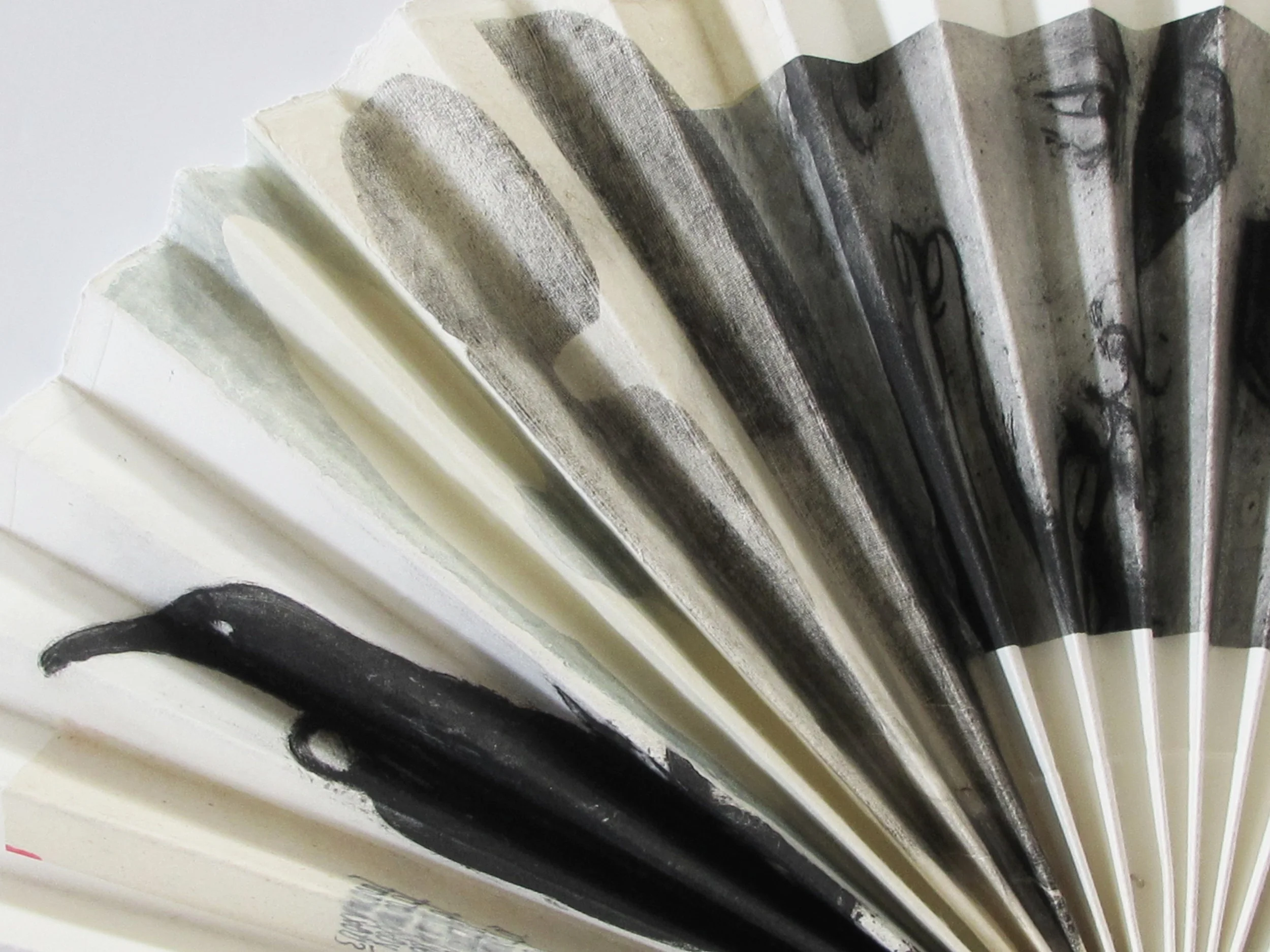The Fantales Series (16 untitled) was created for an exhibition at the Katherine Mansfield birthplace, Wellington (2013). The form of the fan offers multiple glimpses and interpretations allowing the hand made artworks to be assembled and read as a single ‘fantale’. These unique artworks made of etchings and monoprints, some with chinecolle, were individually hand printed on archival Hannemuhle or Rives de Lin etching paper. Inspiration for this series was drawn from Katherine Mansfield’s life and written works.